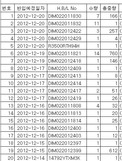 반입예정일자 열만 범위로 지정해서 VBA구문을 만들어 제거해야하지 싶습니다.